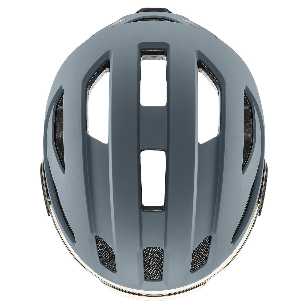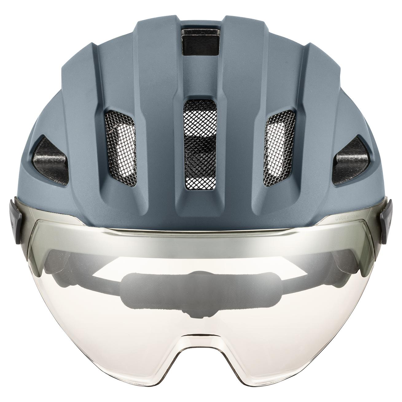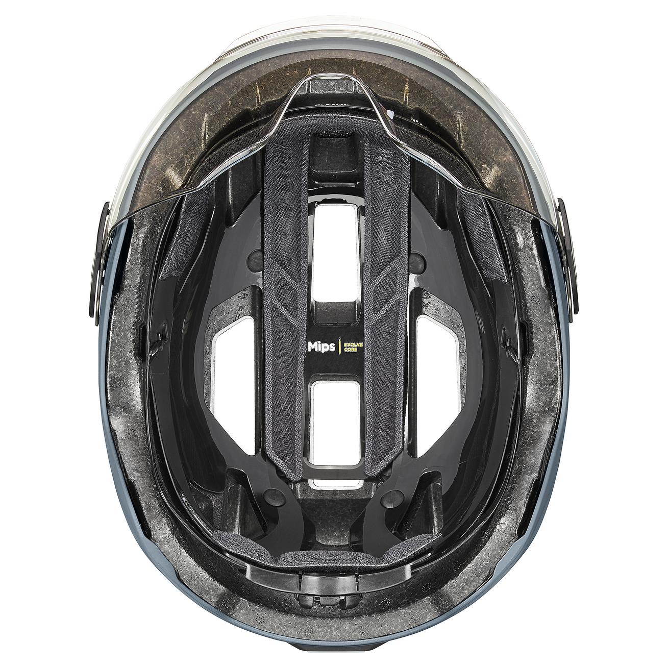 Sicher. Sichtbar. Praktisch. uvex stride visor MIPS – der professionelle Schutz für Kopf und Augen. Der Visierhelm für Commuter- und City-Touren setzt im trendigen Look Maßstäbe bei der Sicherheit. Die Hardshell-Bauweise mit Kunststoff-Aussenschale und leichtem EPS-Kern macht den Helm extrem schlagfest. Zusätzlichen Schutz bietet das Mips®-Sicherheitssystem. Eine Gleitschale im Helm absorbiert im Falle eines Sturzes die Flieh- und Rotationskräfte. Dies minimiert das Risiko von Kopf- und Hirnschäden. Das kratzfeste Visier erlaubt ein uneingeschränktes Sichtfeld – ein weiterer wichtiger Punkt für die Sicherheit im Grossstadtverkehr. Das Visier lässt sich gut mit optischen Brillen kombinieren. Dank neuem Bajonettverschluss ist die Scheibe schnell gegen ein optional erhältliches dunkles oder klares Visier auszutauschen. Gute Sichtbarkeit bei Nacht garantiert das integrierte Plug-in LED-Licht. Weitere Highlights: Der einhändig bedienbare uvex monomatic Verschluss. Und, in der Schale lässt sich ein leichtes Hiplok Z LOK Schloss parken.